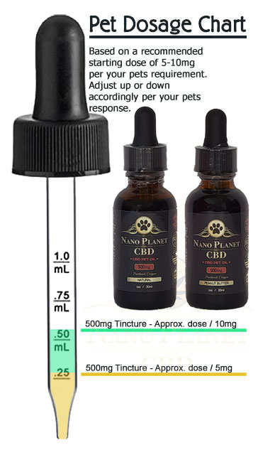 Our CBD pet tinctures are *THC Free and the preferred source for getting your pet the cannabinoids formulated with your pets best interest in mind. We stock 500mg pet tinctures are made with a hemp seed carrier oil (HSO) and come in Natural or Peanut Butter flavor with more flavors on the horizon. All NanoPlanet CBD products are 3rd party tested with lab results posted to each product page respectively. The Right Pet CBD for the Right Peace of Mind!