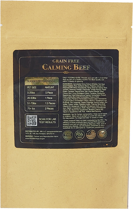 No THCOur THC free 10mg CBD Calming Beef Flavor Pet Treats are a grain free, cost effective method for delivering the correct dose to your finicky furbaby(s). These CBD soft chew treats are the recommended choice for a medium to large size pet with minor pain, anxiety, joint issues, inflammation or arthritis.