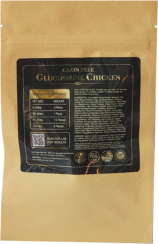 No THCOur THC free 5mg CBD Glucosamine Chicken Flavor Pet Treats are a grain free, cost effective method of delivering the correct dose to your finicky furbaby. These CBD soft chew treats are infused with Glucosamine for added joint pain relief and the recommended choice for a medium to large size pet with joint issues, anxiety, minor pain, inflammation or arthritis.